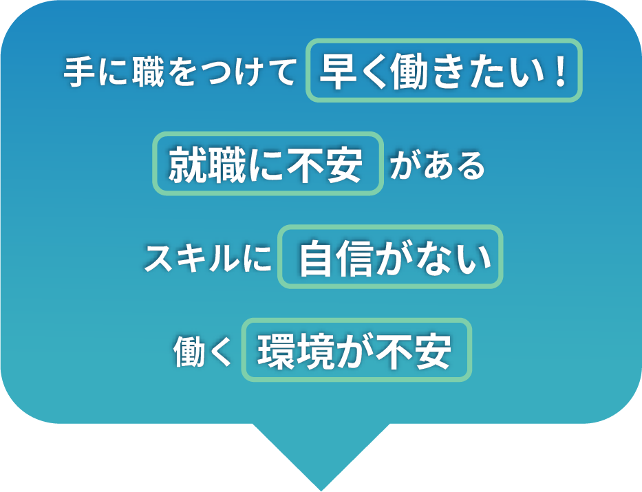 スキルを習得して終わりではなく、それを活かして「働く」までを徹底サポート。 在宅ワーク・企業就職など、あなたに合った働き方を一緒に見つけます。